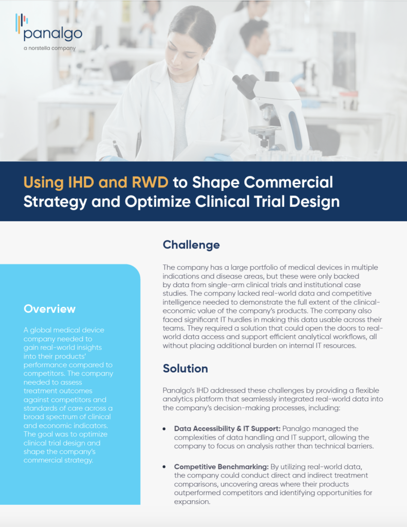 A global medical device company used the IHD platform to quickly gain real-world insights into product performance versus competitors, enabling faster analysis of clinical and economic outcomes and driving meaningful business results.