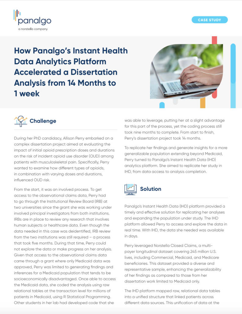 A PhD candidate spent over 14 months on a study about opioid prescriptions due to institutional delays and limited analytics tools. She later replicated the project using the IHD platform and completed the study in just 1 week.